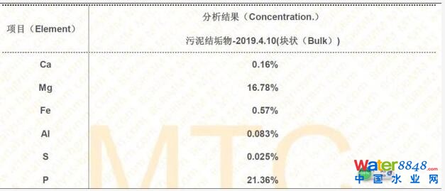 在消化池二級(jí)換熱器結(jié)垢較多,分析污垢成分,鎂、磷含量較多。